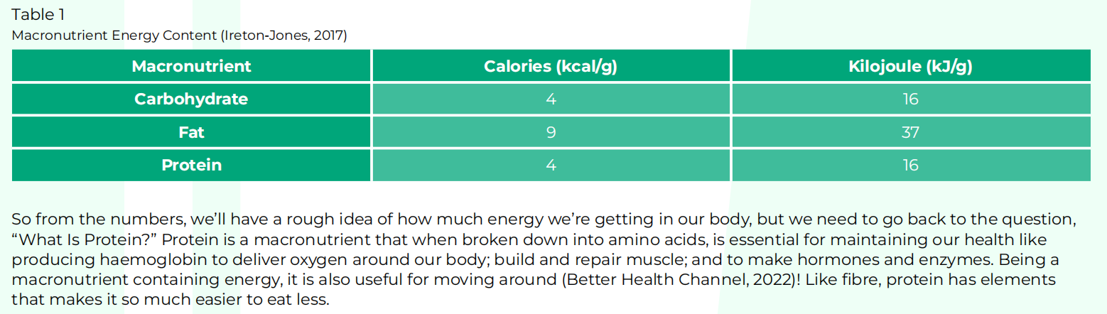 Table 1 below shows how much energy is in each macronutrient.